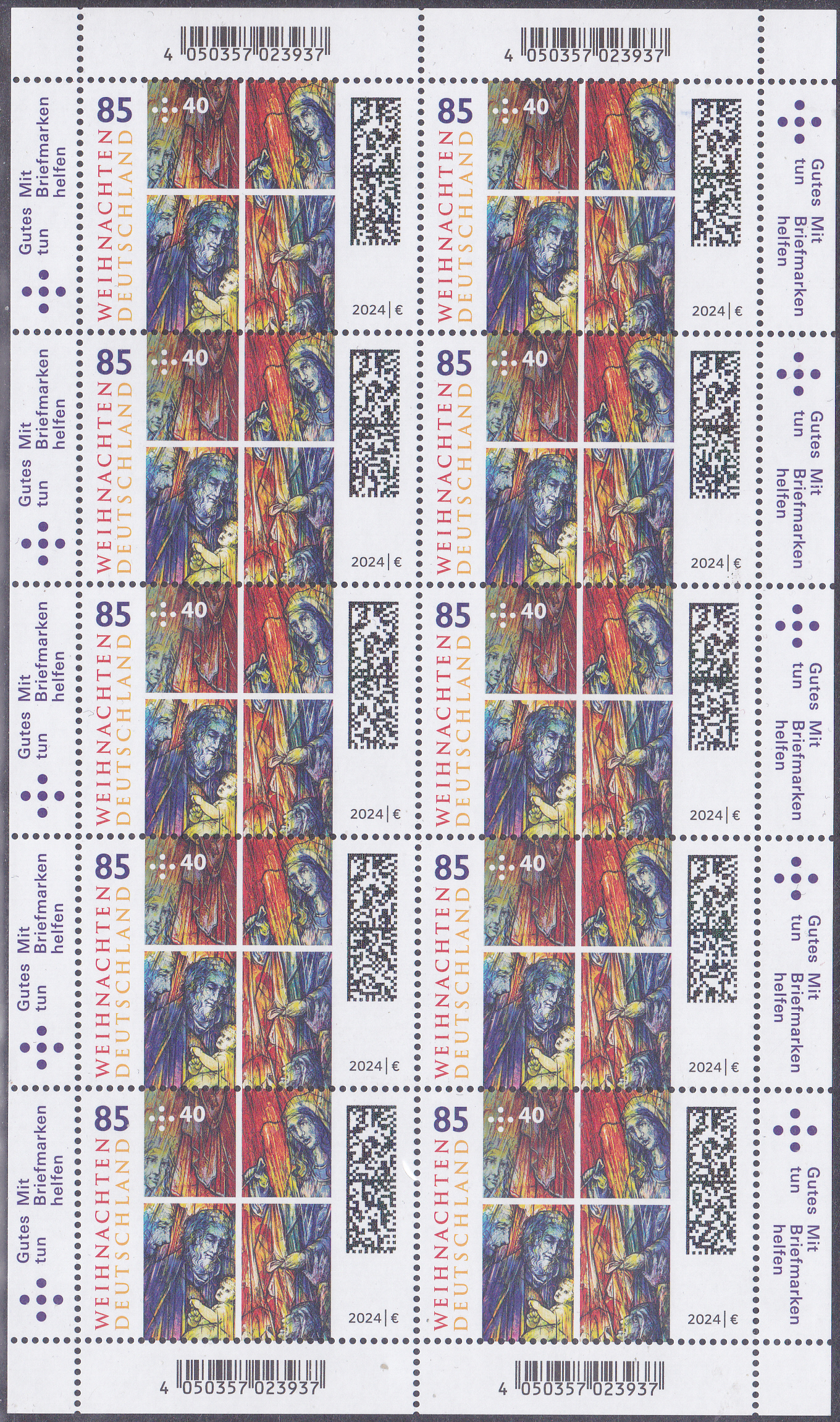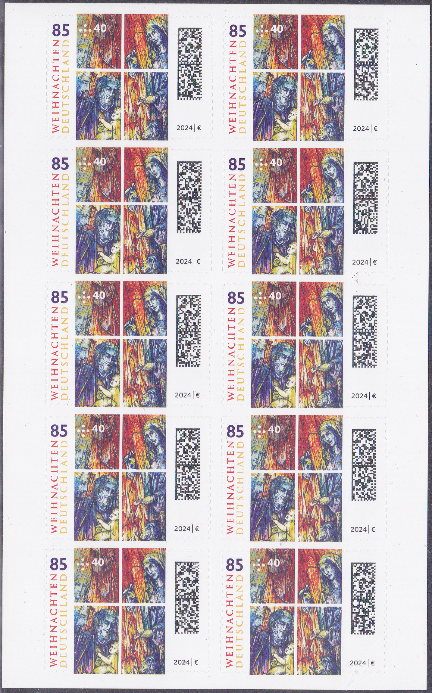 Auf der Weihnachtsmarke 2024 der Deutschen Post (MiNr 3862) wird "Himmlisches Licht", ein Detail eines Kirchenfensters der Abteikirche Tholey, von Mahbuba Elham Maqsoodi.