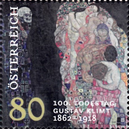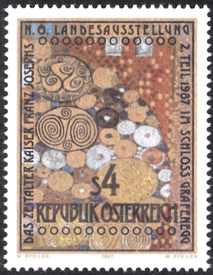 Zur Niederösterreichische Landesausstellung "Das Zeitalter Kaiser Franz Josephs (2. Teil)" in Grafenegg ist in Österreich eine Marke (MiNr 1882) erschienen. Sie zeigt ein Detail aus einem Gemälde von Gustav Klimt.