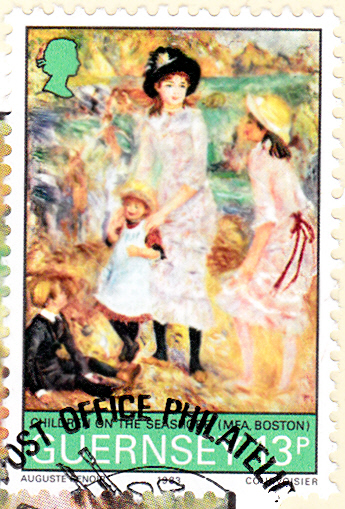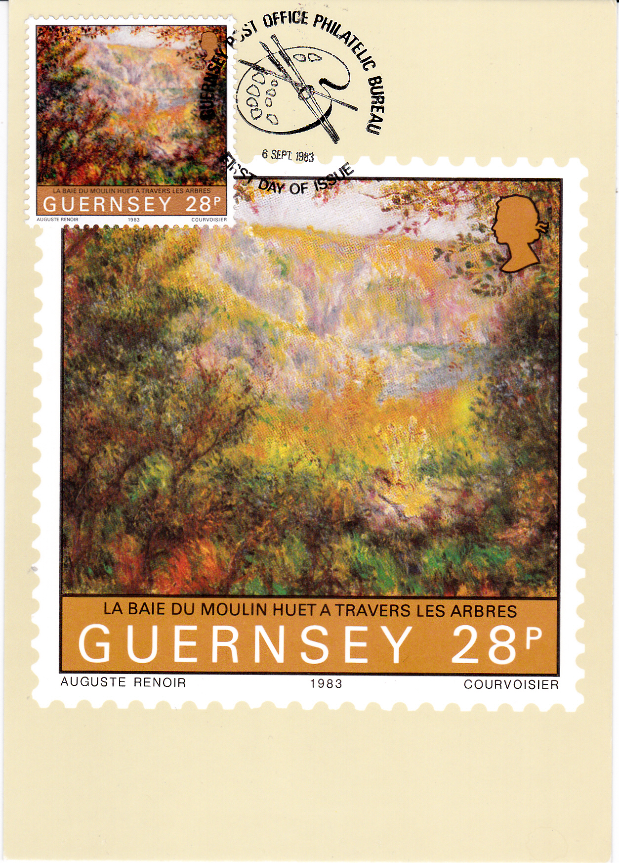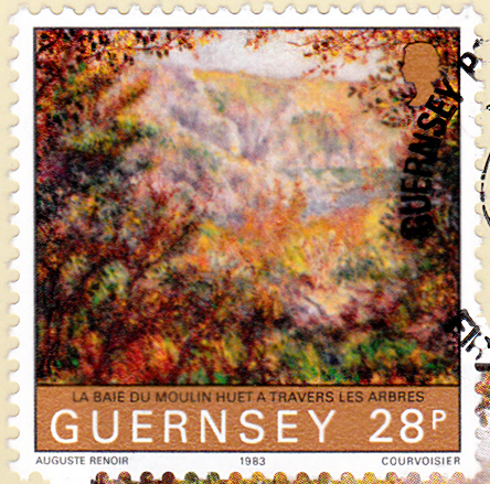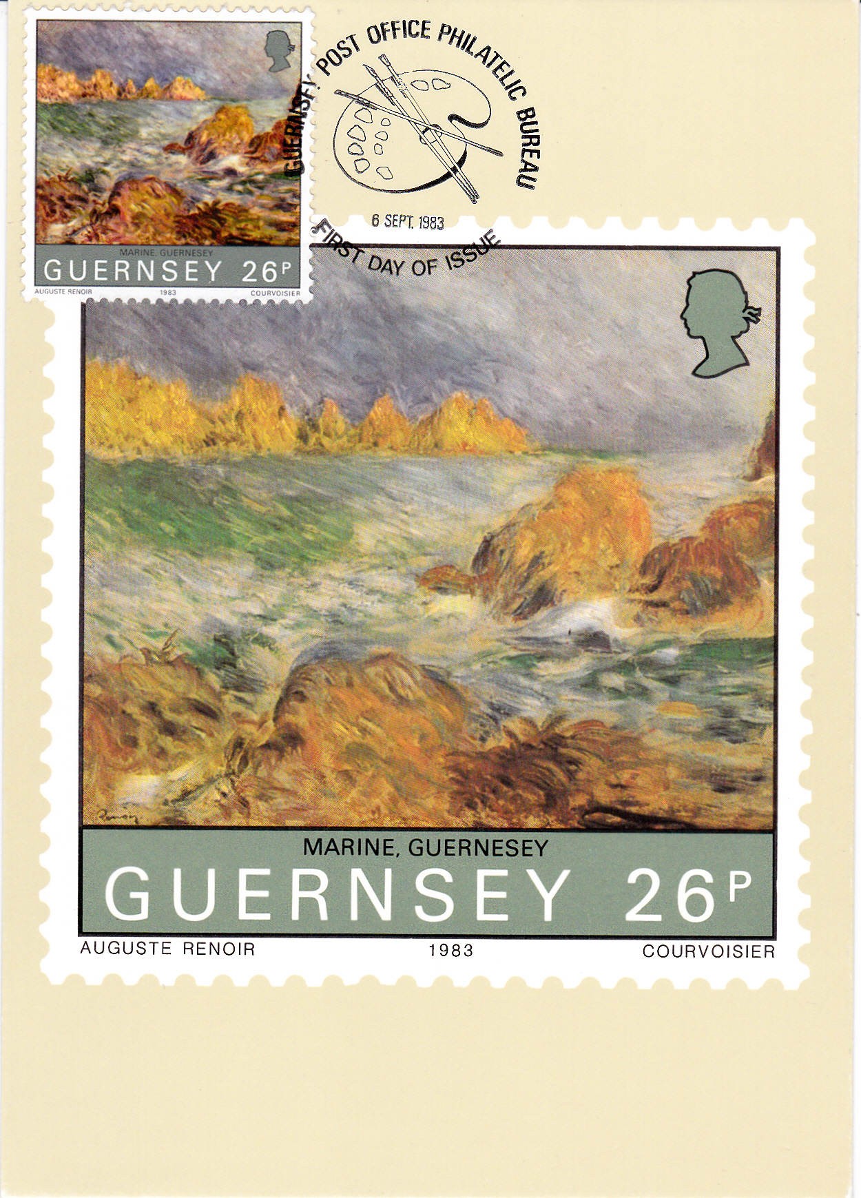 In einer Serie zum 100. Jahrestag des Besuchs von Pierre-Auguste Renoir auf Guernsey erschien auf Guernsey diese Marke (MiNr 271) mit einem "Seegemälde" von Renoir.
