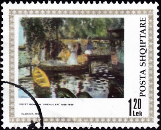 In einer Serie zum 150. Geburtstag von Pierre-Auguste Renoir ist in Albanien diese Marke (MiNr 2468) mit dem Gemälde "Auf der Schaukel" von Auguste Renoir.