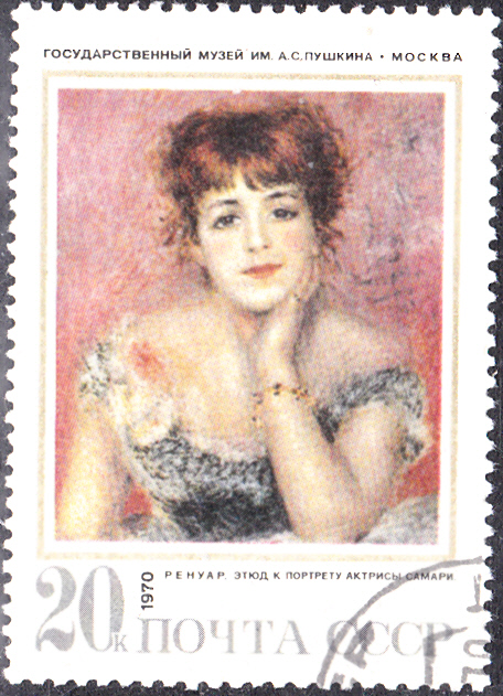 Aus einer Serie der Sowjetunion kommt diese Marke (MiNr 3835) mit dem Gemälde "Jeanny Samari" von Pierre-Auguste Renoir.