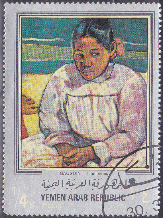 Ergänzend zu den beiden bereits gezeigten Marken aus Jemen-Nord (Arab. Republik) kann ich heute weiter Marken dieser Serie zeigen. Hier kommt eine Marke (MiNr 630) mit einem Ausschnitt der rechten Seite des Gemälde "Frauen von Tahiti, auf dem Strand" von Gauguin.