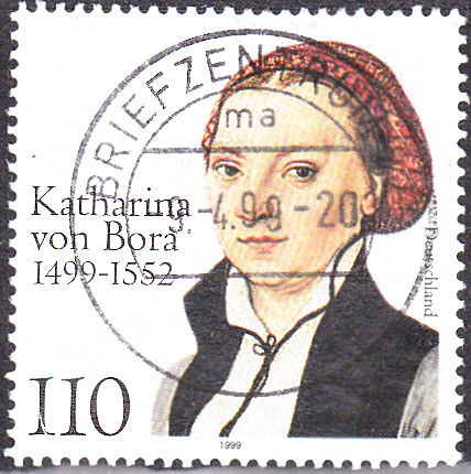 Zum 500. Geburtstag von Katharina von Bora erschien 1999 bei der Deutschen Post AG eine Marke (MiNr 2029) mit ihrem Porträt nach einem Gemälde von Lucas Cranach d. Ä. (1472-1553).