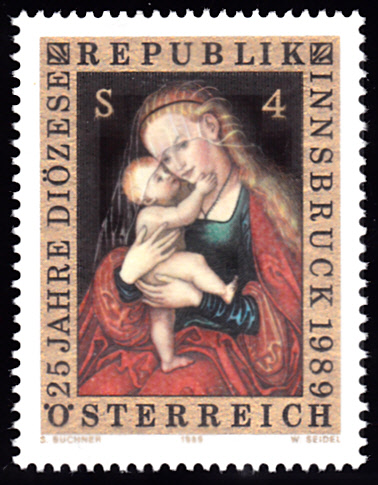 Im Markenbild dieser Marke aus Österreich (MiNr 19459 ist eine Madonna aus dem Altargemälde von Lukas Cranach d. Ä. im Dom St. Jakob, Innsbruck zu sehen.