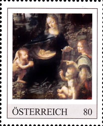 Aus Österreich kommt diese Marke mit dem Gemälde "Die Felsgrottenmadonna" von Leonardo da Vinci. Das Gemälde befindet sich im Louvre in Paris.