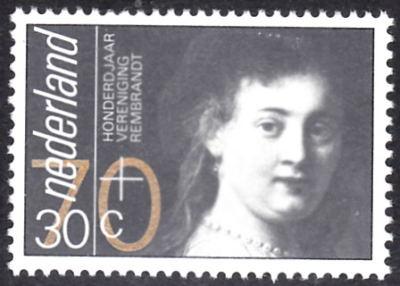Auf dieser Marke aus den Niederlande (MiNr 1231) ist "Saskia" nach einem Gemälde von Rembrandt zu sehen. Es handelt sich um einen Ausschnitt aus dem bereits auf Marken gezeigten Gemälde "Selbstbildnis mit Saskia".