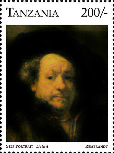 Aus einer Serie "125 Jahre Metropolitan Museum of Art, New York" aus Tansania stammt diese Marke (MiNr 2321) mit dem Gemälde "Christus und die Samariterin" von Rembrandt.