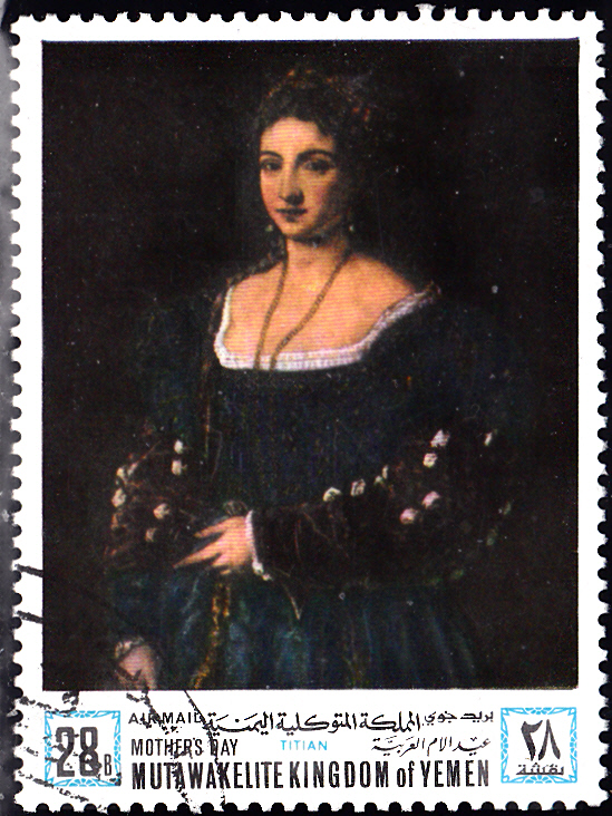 In einer Serie mit Frauengemälden zum "Muttertag" ist im Jemen-Nord (Königreich) eine Marke (MiNr 489 A) mit dem Gemälde "La Bella" von Tizian erschienen.