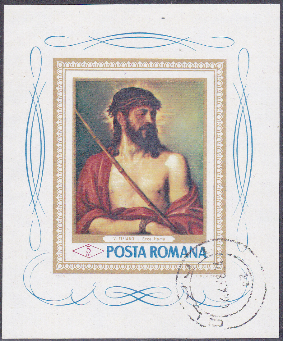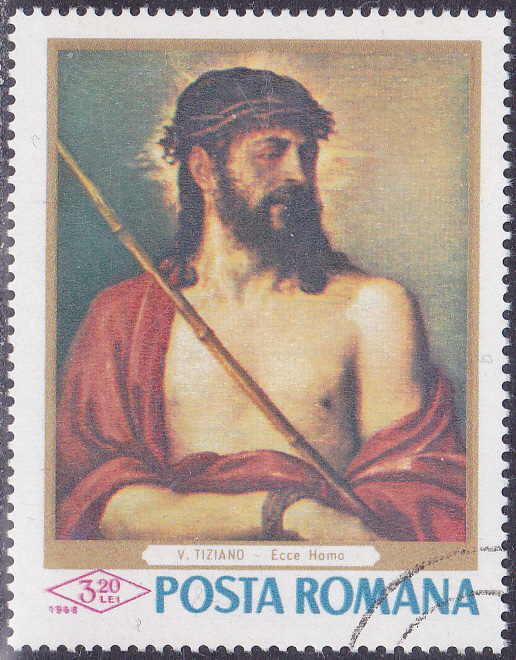 Diese Marke aus Rumänien (MiNr 2671) mit dem Gemälde "Ecce Homo" von Tizian.