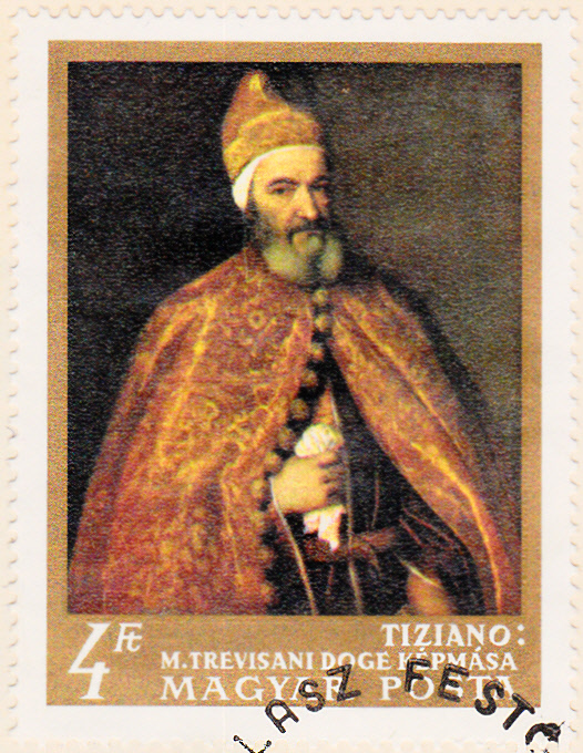 1968 erschien in der ungarischen Serie "Gemälde italienischer Meister" auch eine Marke (MiNr 2470 A) mit dem Gemälde "Bildnis des Dogen Marcantonio Trevisani" von Tizian. Die Marke gibt es auch geschnitten.