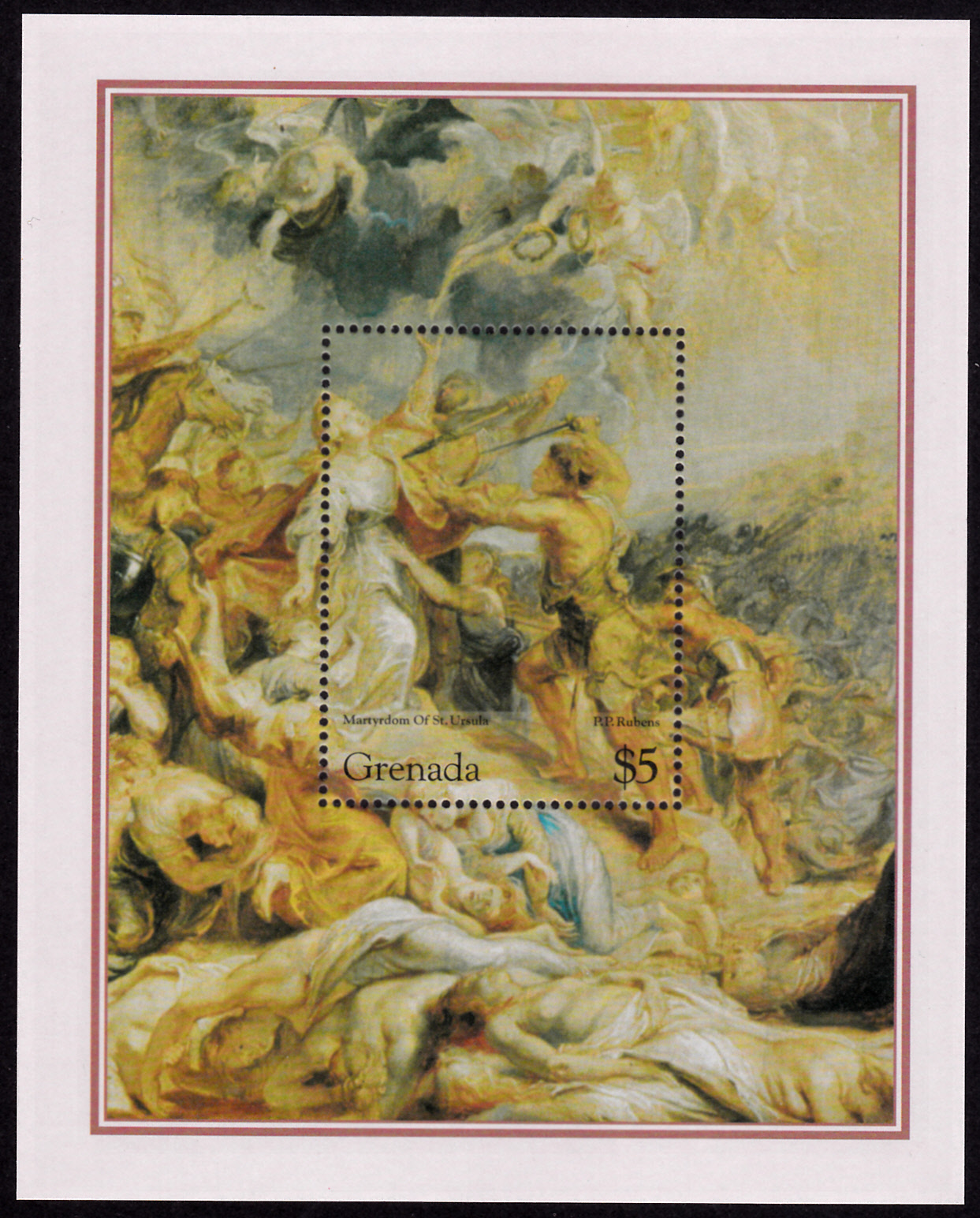 Zu dieser Serie aus Grenada gehört auch noch ein Block (MiNr Block 418 mit Marke MiNr 3143). Er zeigt das Gemälde "das Martyrium der heiligen Ursula und die elftausend Jungfrau" von P. P. Rubens.