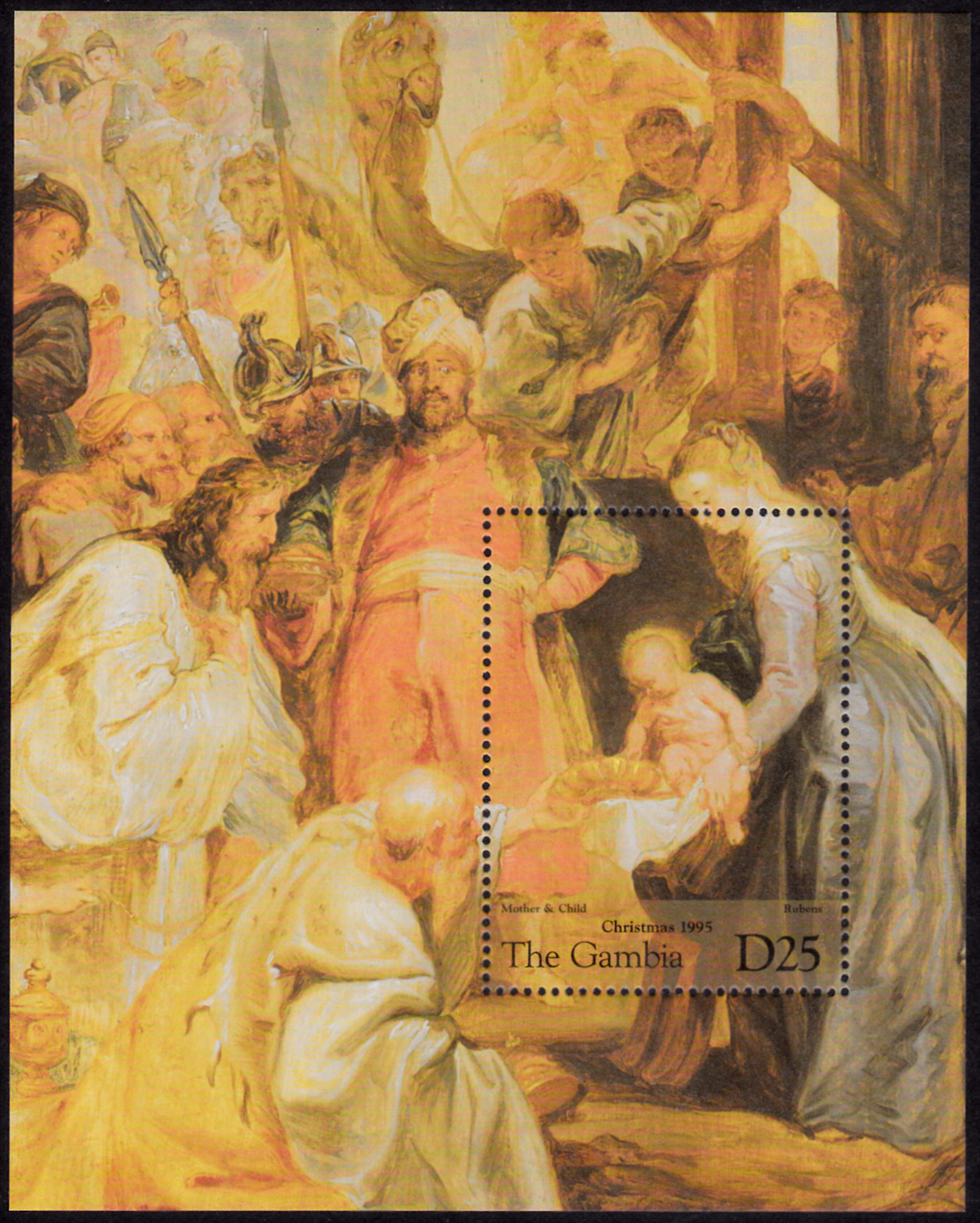 Bei dieser Ausgabe aus Gambia zu Weihnachten 1995 zeigt ein Block (MiNr 268 mit Marke 2213) das Gemälde "Die Anbetung der Könige" von P. P. Rubens.