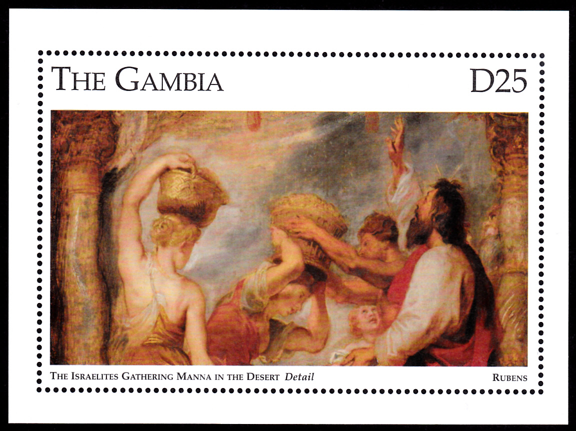 Es folgt ein weiterer Block aus Gambia (MiNr 278 mit Marke MiNr 2305). Die Marke in diesem Block bildet ein Detail aus dem Gemälde "Die Israeliten erhalten Manna in der Wüste" ab. Dies ist ebenfalls ein Werk von Rubens.