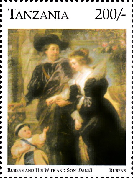 Aus einer Serie "125 Jahre Metropolitan Museum of Art, New York" aus Tansania stammt diese Marke (MiNr 2322) mit einem Ausschnitt aus dem Gemälde "Rubens mit Helene Fourment und Sohn" von P. P. Rubens.