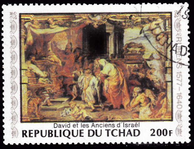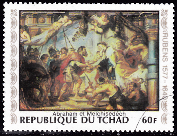 Zum 400. Geburtstag von Rubens sind auch im Tschad vier Marken erschienen. Auf dieser Marke zu 60Fr (MiNr 835) ist das Gemälde "Das Treffen von Abraham und Melchisedek" (um 1626) von Peter Paul Rubens abgebildet.