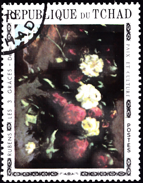 Es folgt nun eine Marken aus einer anderen Serie aus dem Tschad (MiNr 375 A) mit einem ganz kleinen Ausschnitt aus dem Gemälde "Die drei Grazien" von Rubens.