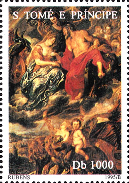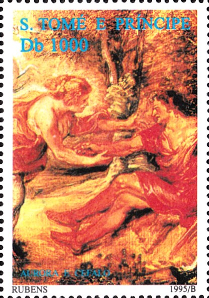 Aus einer Serie aus São Tomé und Príncipe (ein afrikanischer Inselstaat in Äquatorhöhe) stammt diese Marke (MiNr 1606) mit einem Ausschnitt aus dem Gemälde "Aurora entführt Kephalos" von Peter Paul Rubens.