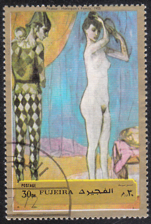 In Fujeira ist in einer Serie "Aktgemälde von Tizian und Picasso" Diese Marke (MiNr 1259) mit Picassos Gemälde "Familie des Harlekins" (aus dem Jahre 1905) erschienen.
