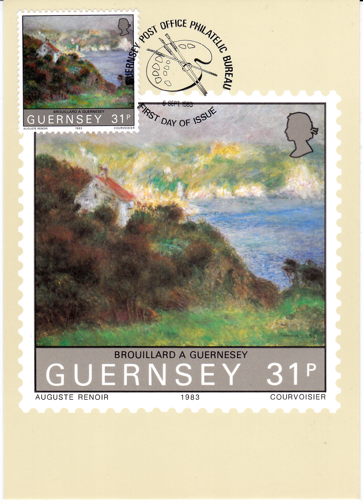 Mit der fünften Marke (MiNr 273) ist die Serie komplett. Sie zeigt das Gemälde "Nebel auf Guernsey" von Auguste Renoir.