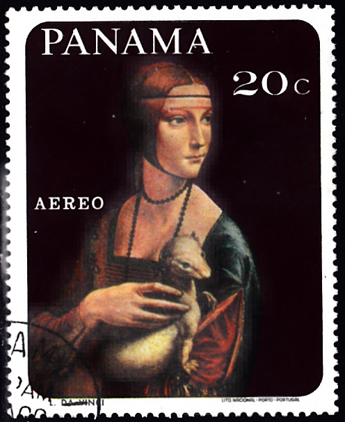 In einer Serie "Tiergemälde berühmter Maler" ist in Panama diese Marke (MiNr 1015) mit dem Gemälde "Die Dame mit dem Hermelin" von Leonardo da Vinci erschienen.