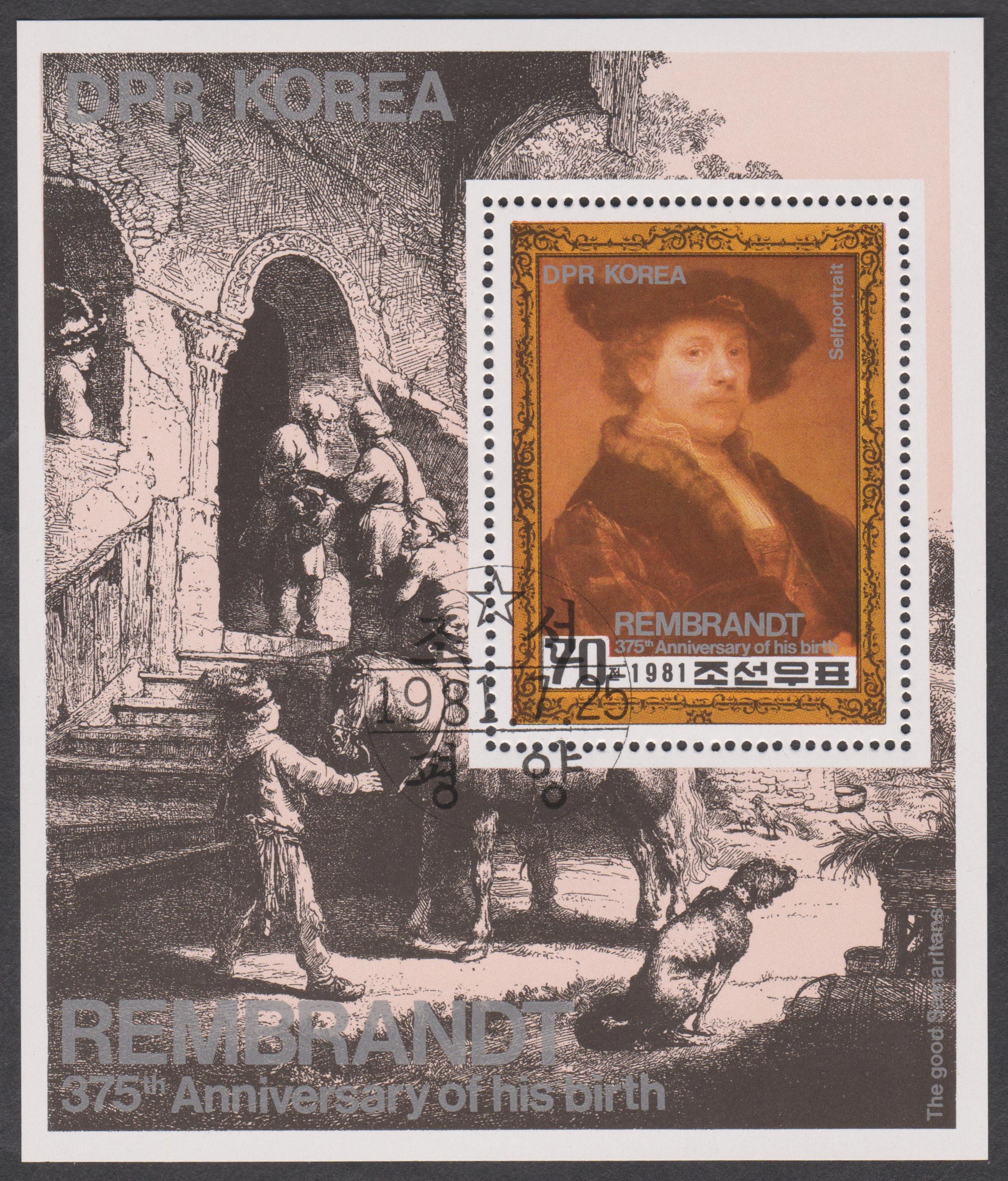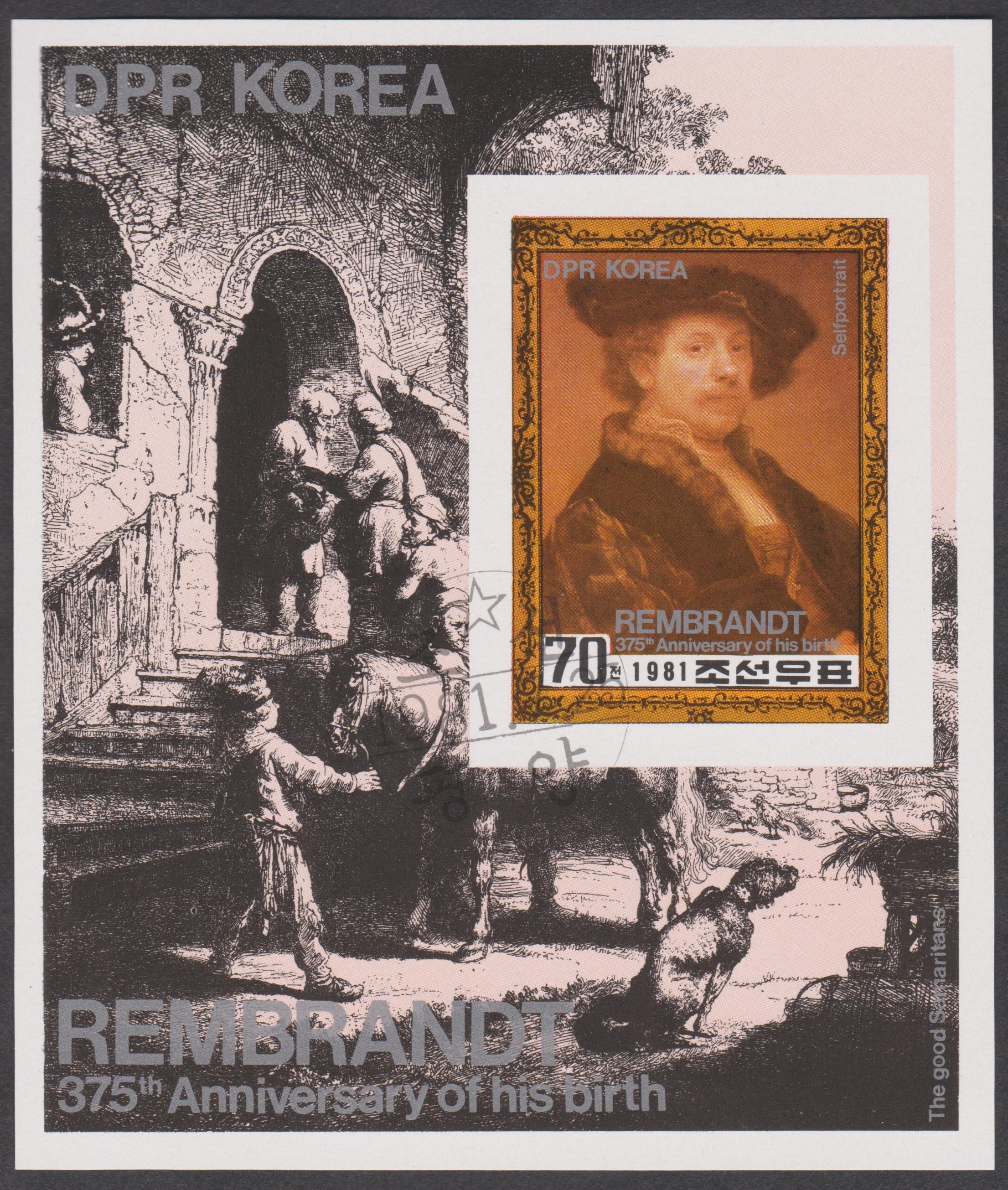 Nordkorea Block 101 B mit MiNr. 2149 B zeigt ein Selbstporträt von Rembrandt: