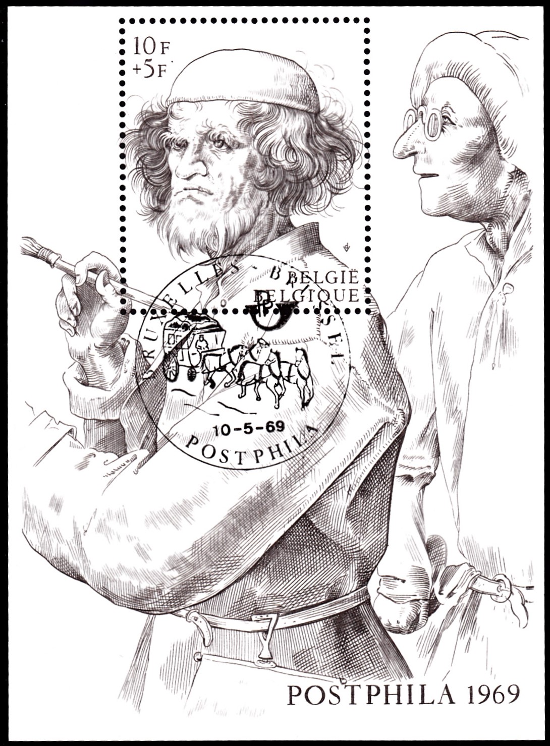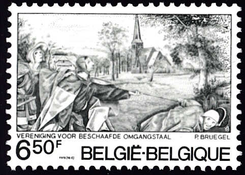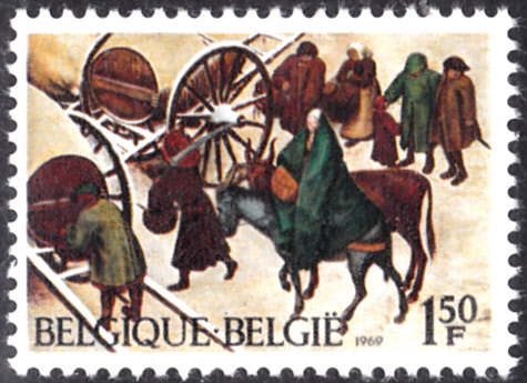 Die Weihnachtsmarke 1969 aus Belgien (MiNr 1574) zeigt einen Ausschnitt aus dem Gemälde "Die Volkszählung von Bethlehem" von Pieter Bruegel dem Älteren.