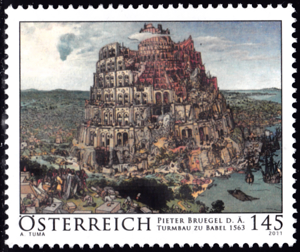 In der Serie "Alte Meister" ist in Österreich diese Marke (MiNr 2938) mit dem Gemälde "Der Turmbau zu Babel" von Pieter Bruegel d. Ä. erschienen.
