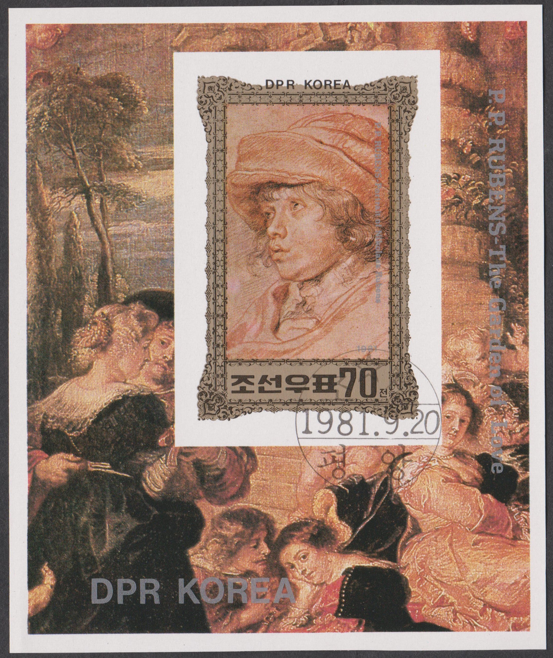 Dieser Kleinbogen Nordkorea MiNr. 1704 zeigt ein Selbstbildnis von Peter Paul Rubens: