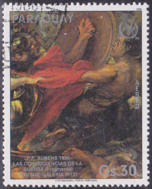 Zum Internationalen Jahr des Friedens ist in einer Serie in Paraguay diese Marke (MiNr 4046) mit einem Detail aus dem Gemälde "Die Folgen des Krieges" von P. P. Rubens erschienen.