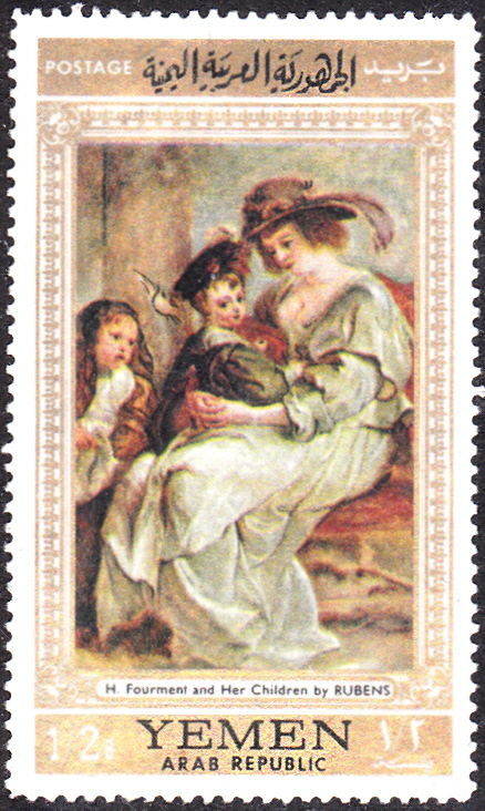Aus Jemen-Nord (Arab. Republik) kommt diese Marke (MiNr 584) mit dem Gemälde "Helene Fourment und ihre Kinder" (um 1636/37) von Peter Paul Rubens.