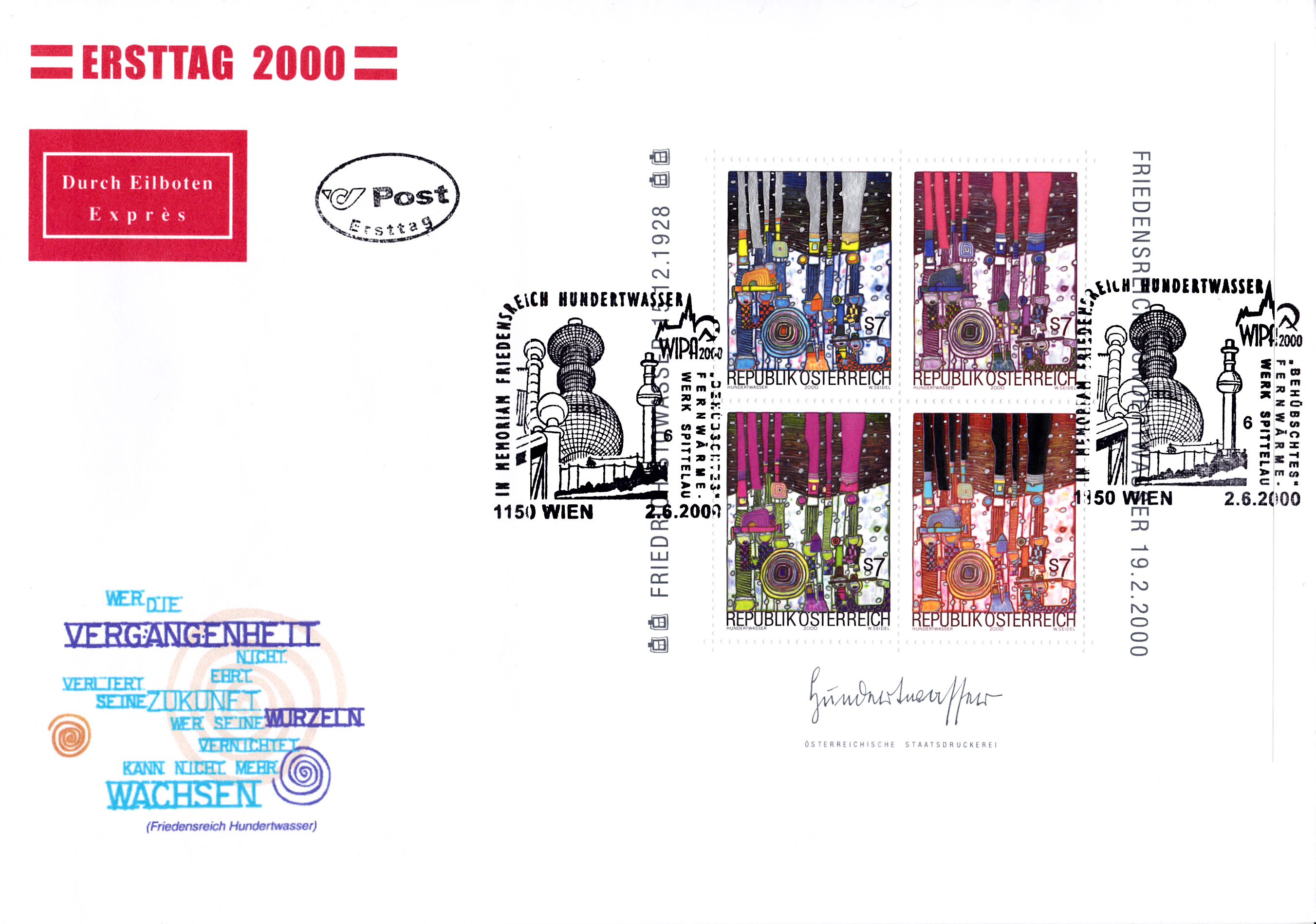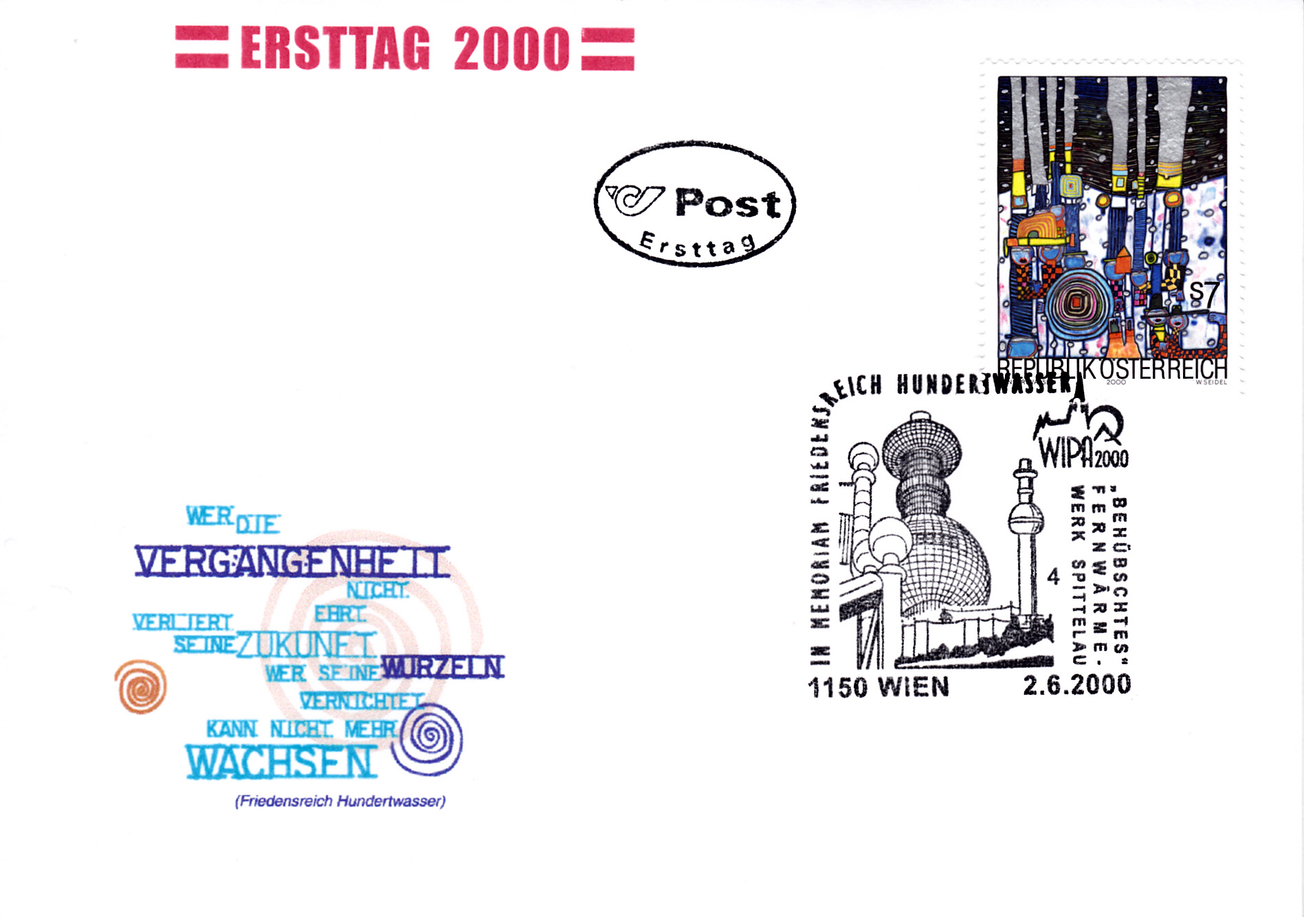 Aus Anlass "20 Jahre Kunst Haus Wien" gab es in Österreich eine Marke (MiNr 2917) mit der Abbildung Kunst Haus Wien nach einem Entwurf von Friedensreich Hundertwasser.