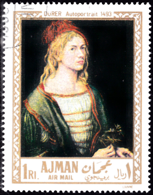 In Ajman ist in einer Serie "Gemälde" diese Marke (MiNr 225 A) mit dem Selbstbildnis von Albrecht Dürer aus dem Jahre 1493 erschienen.