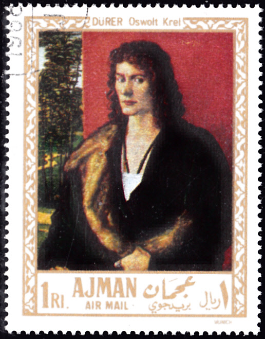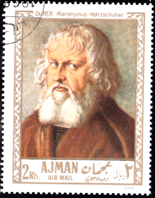 In der Serie aus Ajman gibt es noch eine Marke (MiNr 230 A) mit einem Gemälde von Albrecht Dürer. Sie zeigt das Bildnis des Hieronymus Holzschuher.