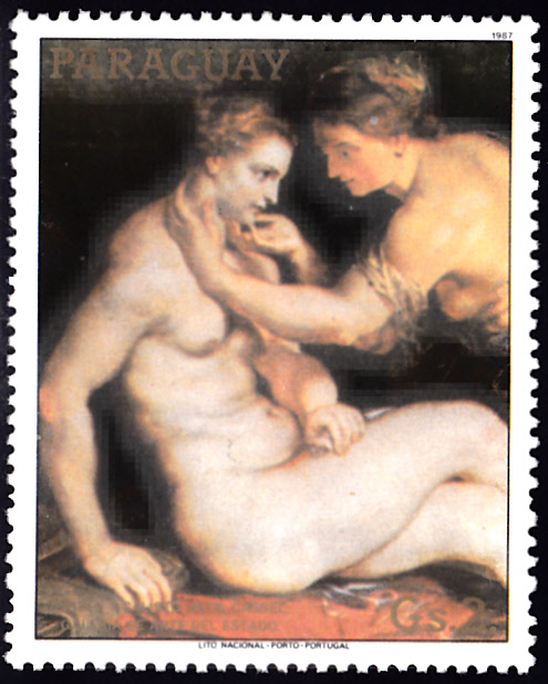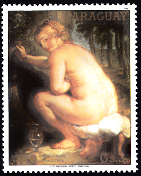 Auf dieser Marke (MiNr 4085) der gleichen Serie sehen wir einen Ausschnitt aus seinem Gemälde "Jupiter und Calisto". Das Werk befindet sich in der Staatlichen Gemäldegalerie in Kassel.