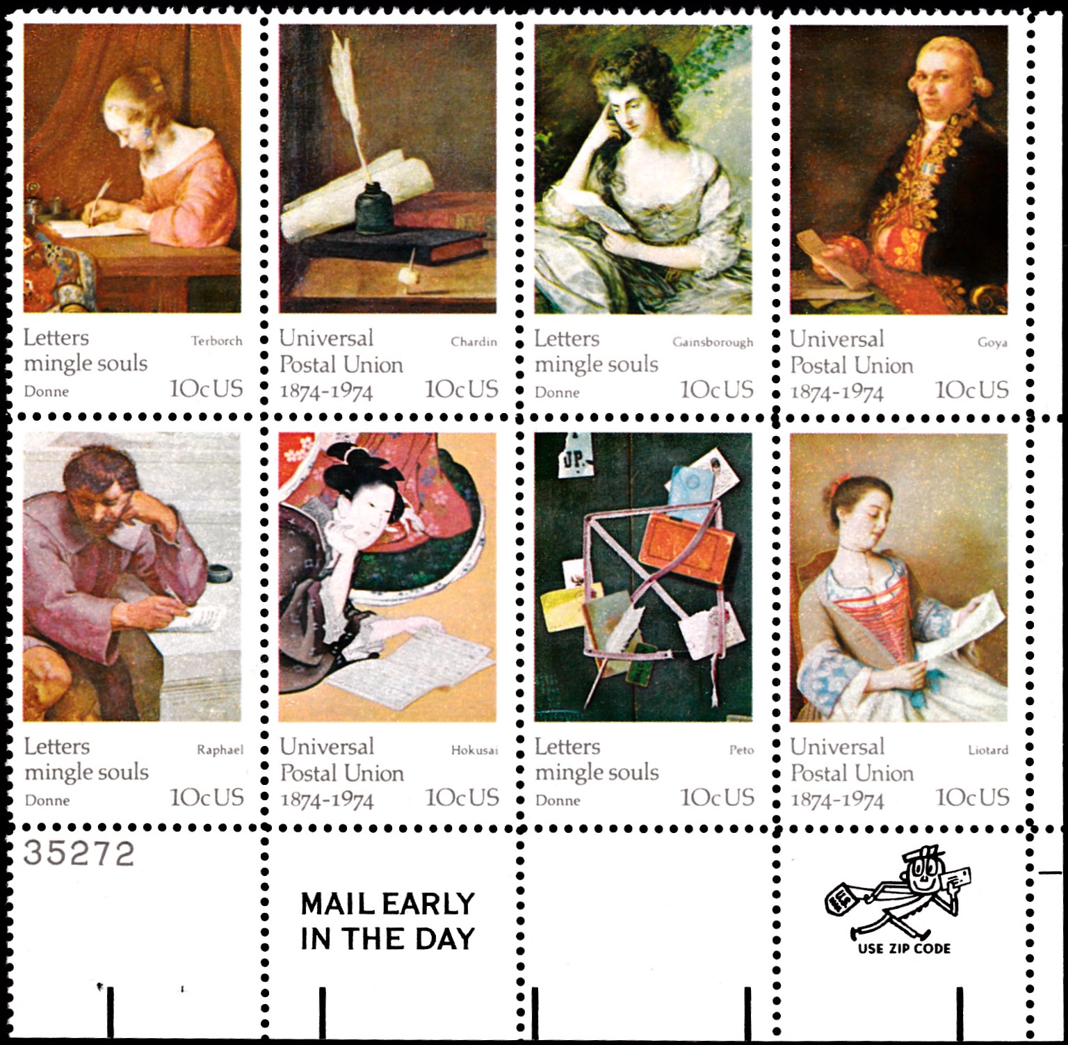 Auf einer Marke aus den USA (MiNr 1139) der Serie "100 Jahre Weltpostverein (UPU)" wird das Gemälde "Alte Papiersachen" von John Fredrick Peto gezeigt.