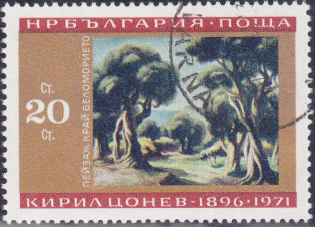 Auf dieser Marke zum 75. Geburtstag von Kiril Tsonev aus Bulgarien (MiNr 2131) wird ein Selbstporträt gezeigt.