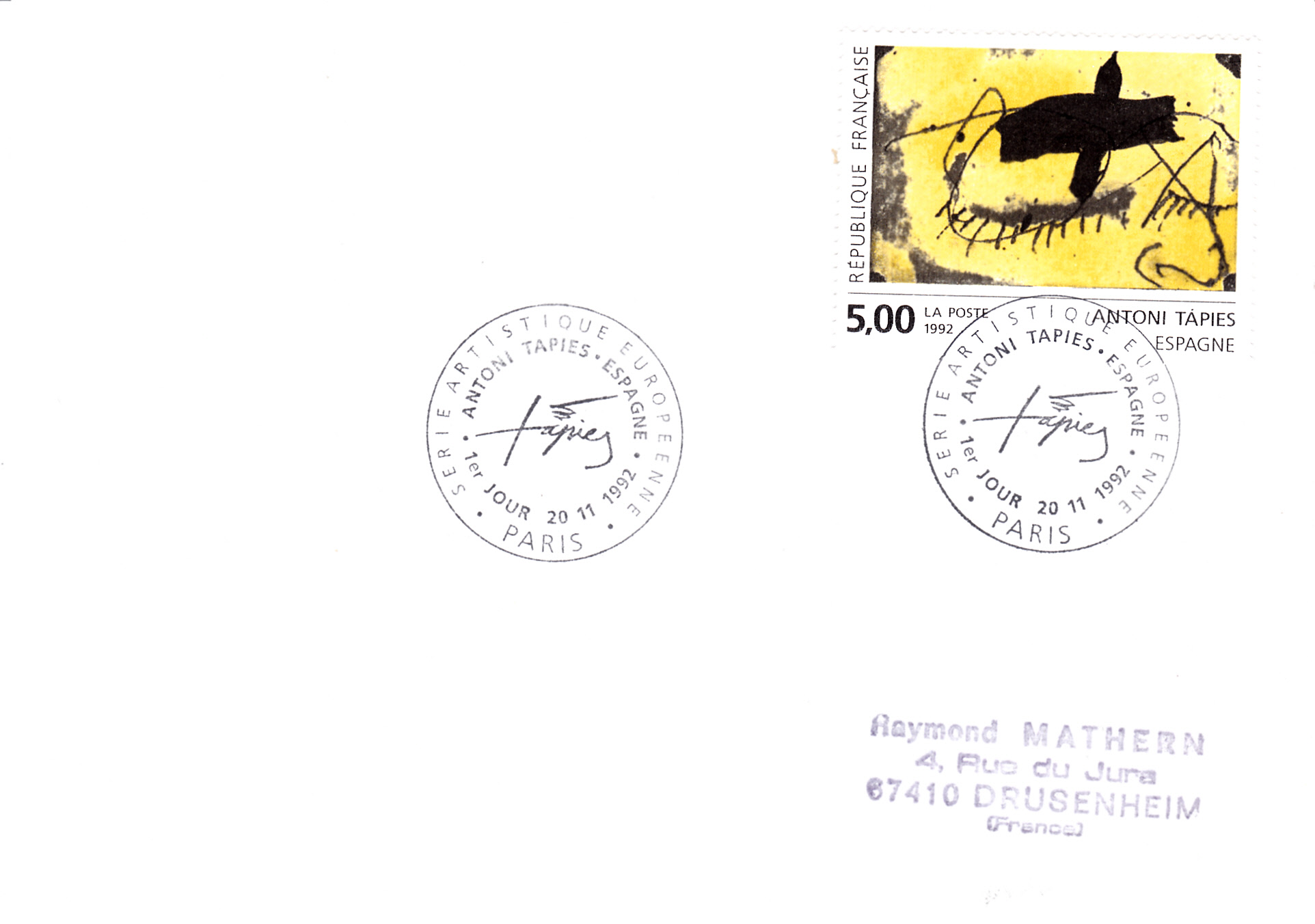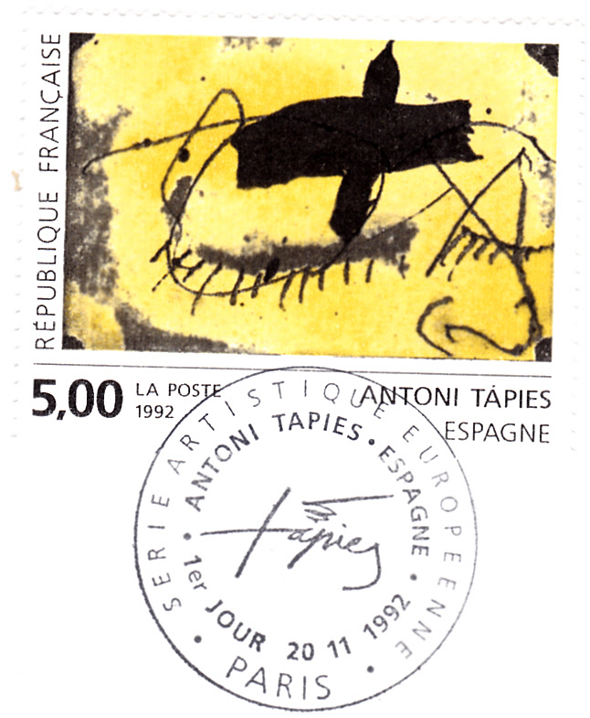 Aus Frankreich kommt diese Marke (MiNr 2930) mit einem Abstrakten Gemälde von Antoni Tapies.