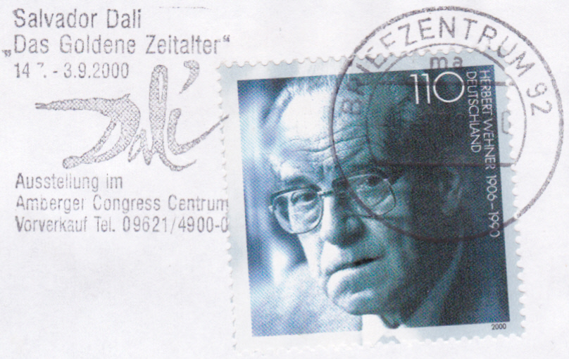 Maschinenwerbestempel aus dem Briefzentrum 92 mit einem Werbeeinsatz zur Ausstellung Salvador Dali "Das Goldene Zeitalter" in Amberg.