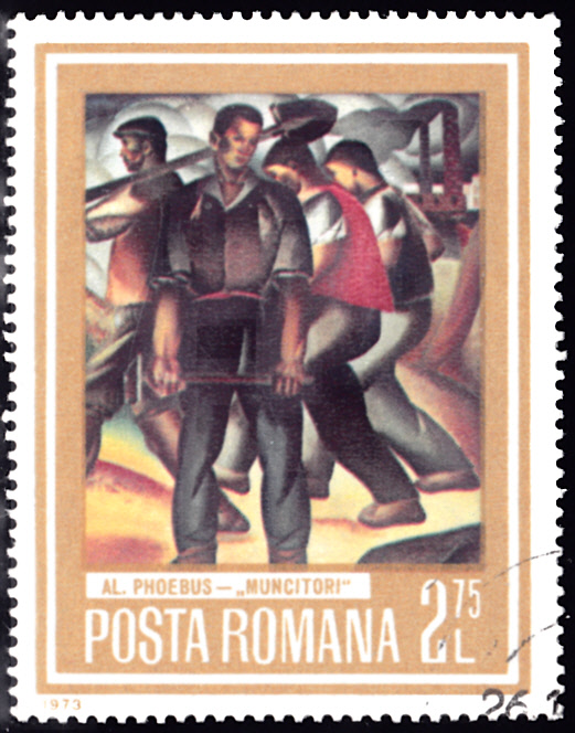 Auf dieser Marke aus Rumänien (MiNr 3154) sehen wir das Gemälde "Arbeitergruppe" von Alexandru Phoebus.
