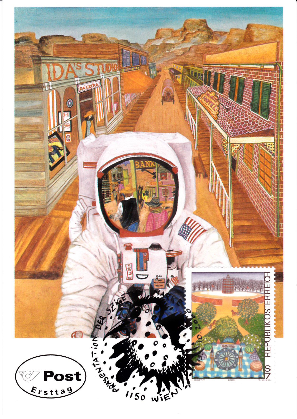 Zu dieser Marke wurde von der Post auch eine Maximumkarte produziert. Die Karte zeigt das Werk "Westerner's Vision" von Ida Szigethy. Der gedruckte "Stempel" auf der Karte trägt keine Kennziffer.