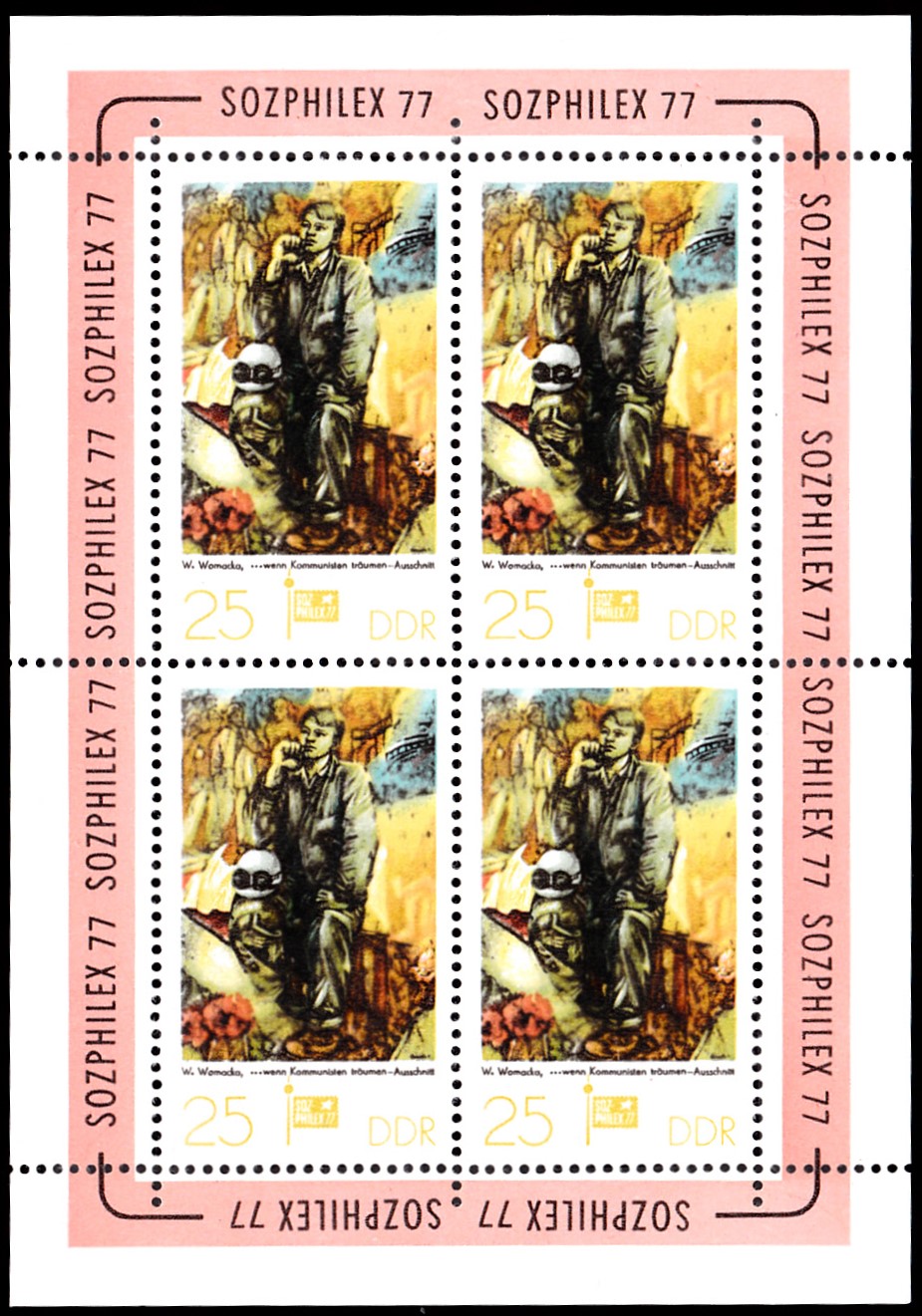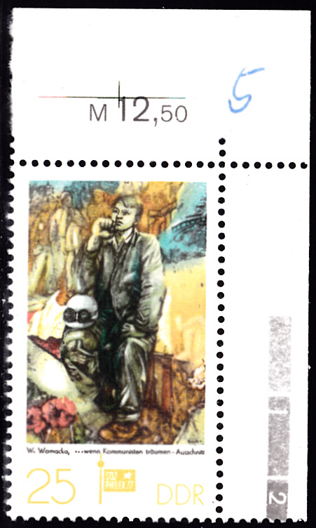 Auf einer Marke zur Internationalen Briefmarkenausstellung sozialistischer Länder SOZPHILEX ’77 in Berlin erschien in der DDR eine Marke (MiNr 2248) mit einem Detail aus dem Gemälde "… wenn Kommunisten träumen" von Walter Womacka.
