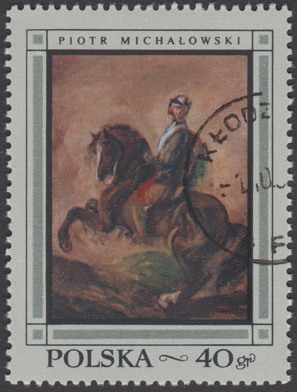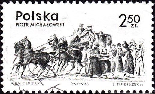 Zum Tag der Briefmarke 1966 erschien in Polen eine Marke (MiNr 1715) mit dem Motiv "Der Stallknecht Percheron-Pferde zäumend" nach einem Gemälde von Piotr Michałowski (1800-1855).