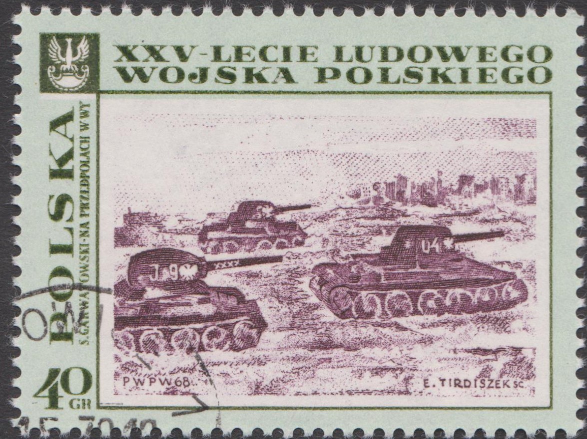 Polen MiNr. 1876 zeigt sein Gemälde "Panzerangriff vor Warschau - 17. Januar 1945":