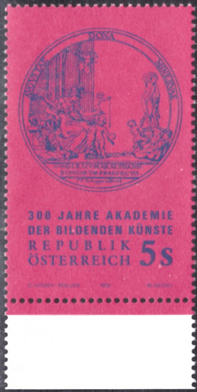 Aus Anlass "300 Jahre Akademie der Bildenden Künste" verausgabte die Österreichische Post eine Marke (MiNr 2079), die das Siegel der Akademie zeigt.