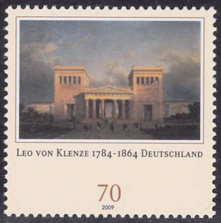 Auf einer Marke der Deutschen Post (MiNr 2719) zum 225. Geburtstag von Leo von Klenze ist das Gemälde "Ansicht der Propyläen in München" von Leo von Klenze abgebildet.