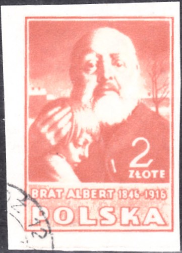 Auf dieser Marke aus Polen (MiNr 464B) sehen wir ein Porträt von Albert Chmielowski (Hl. Bruder Albert von Krakau) nach einem Gemälde von Leon Wyczółkowski (1852–1936).
