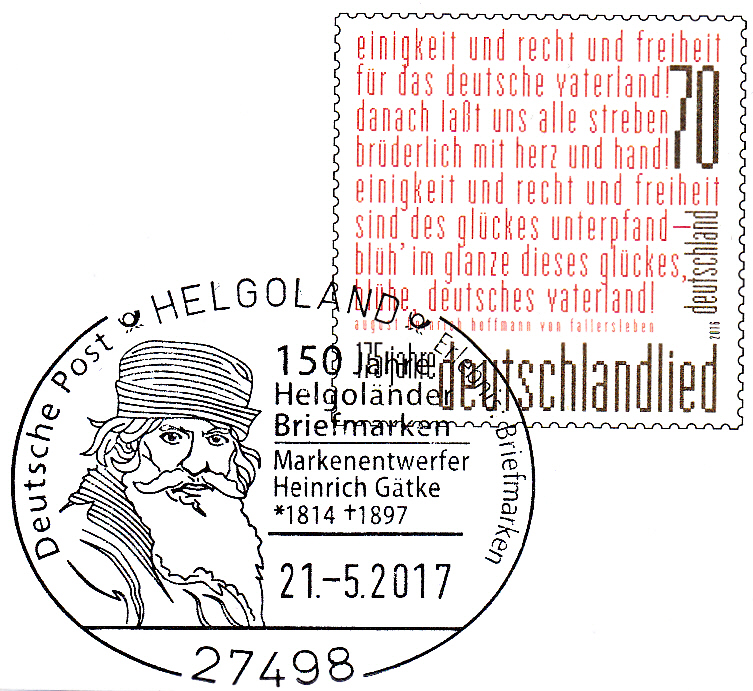 Diese Ganzsache wurde mit einem Sonderstempel aus Helgoland vom 21.5.2017 gestempelt. Im Stempelbild wird ein Porträt von Heinrich Gätke gezeigt.
