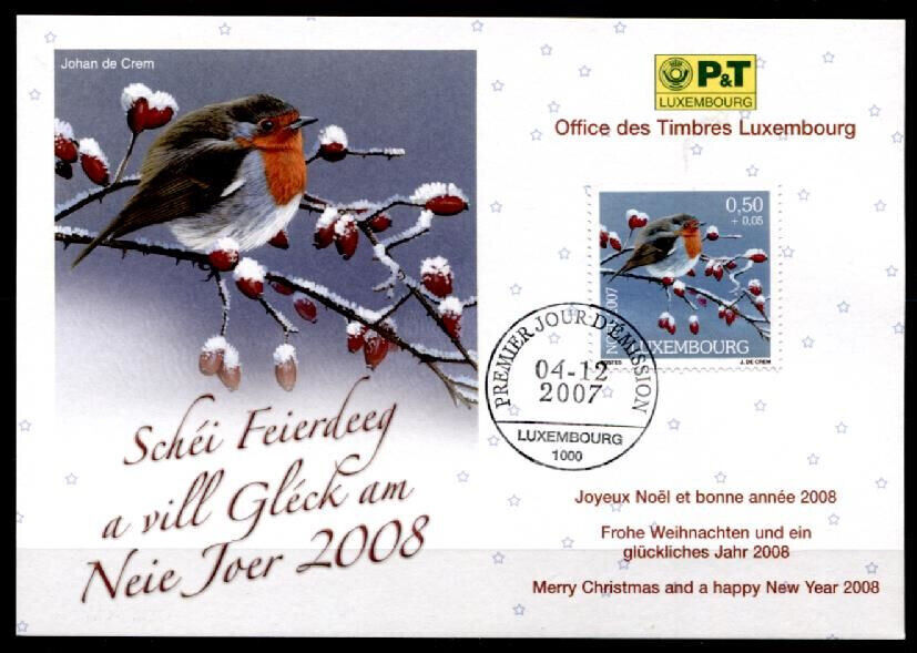 DE CREM Johan wurde 1962 geboren und ist belgischer Herkunft. Gemälde eines Rotkehlchens, das Weihnachten und Neujahr 2007 feiert.