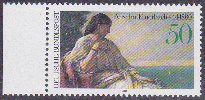 Zum 100. Todestag von Anselm Feuerbach erschien bei der Deutschen Bundespost eine Marke (MiNr 1033 mit einem Detail aus dem Gemälde "Iphigenie" von A. Feuerbach.