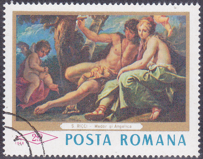 Aus Rumänien kommt diese Marke (MiNr 2670) mit dem Gemälde "Angelika und Medor" von Sebastiano Ricci.